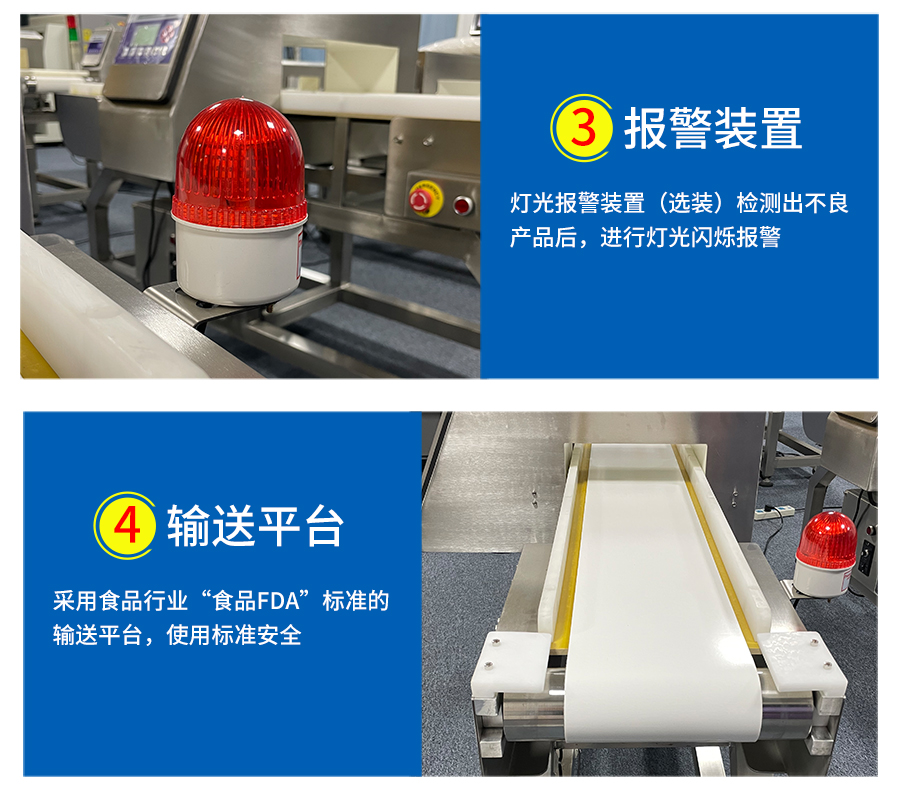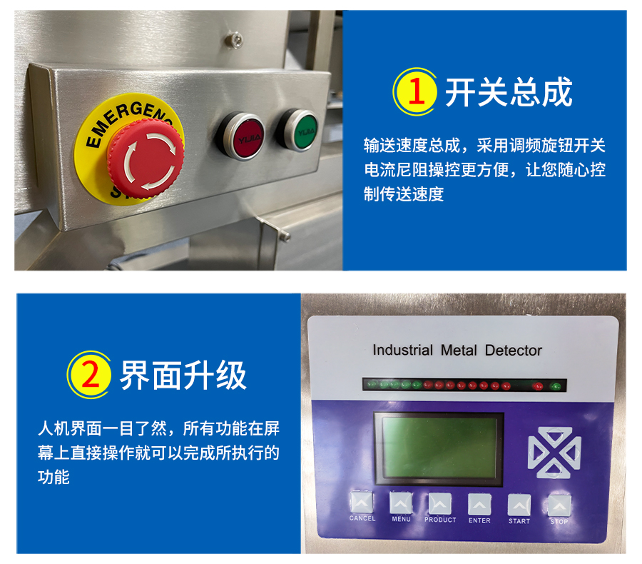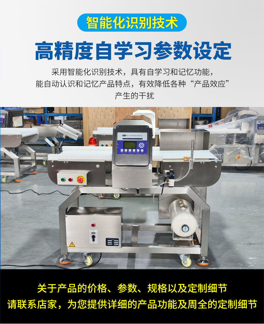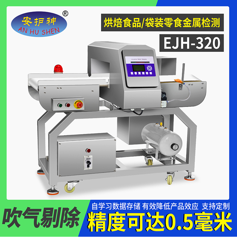 EJH-320系列全金屬檢測儀,可根據(jù)生產(chǎn)線需求配套定制窗口尺寸,檢測精度最大化,先進數(shù)字信號處理技術(shù),有效克服產(chǎn)品效應(yīng),可精準檢測鐵、不銹鋼、銅、鋁等金屬,靈敏度高達0.5mm,廣泛應(yīng)用在檢測肉類、水產(chǎn)、果蔬等食品加工過程中混入的金屬碎片、鐵絲等,精準高效,為您徹底解決金屬異物隱患。