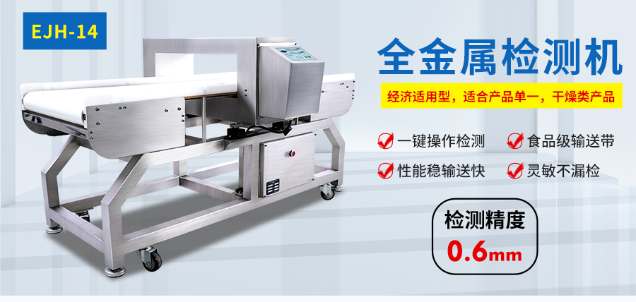 EJH-320P智能全金屬檢測儀精準高效,采用先進的數字信號處理技術和智能化算法,精準識別各類金屬雜質,可檢測鐵、不銹鋼、銅、鋁等所有金屬,靈敏度高達0.3mm,即使是細微的金屬顆粒也能輕松識別,采用優質元器件和精密制造工藝,確保設備長時間穩定運行,降低維護成本,先進的數字信號處理技術,有效抑制產品效應和環境干擾,確保檢測結果的準確性。 廣泛應用在工業生產、食品加工、紡織制造等領域,可根據不同行業、不同產品需求,提供通道式、落體式、管道式等多種型號,為企業解決有效檢測并剔除金屬異物的難題。