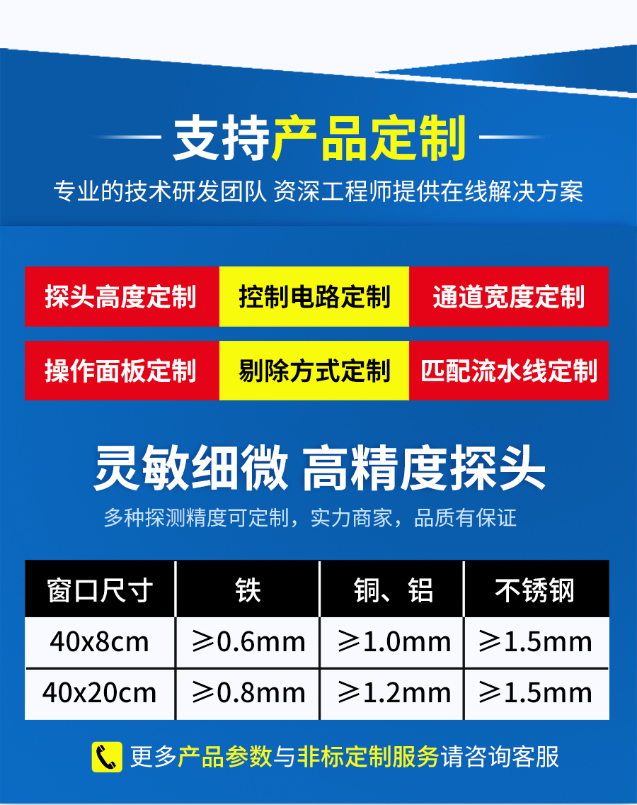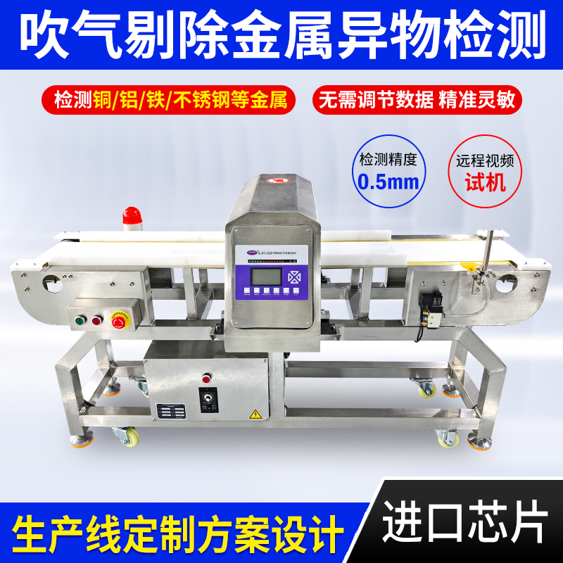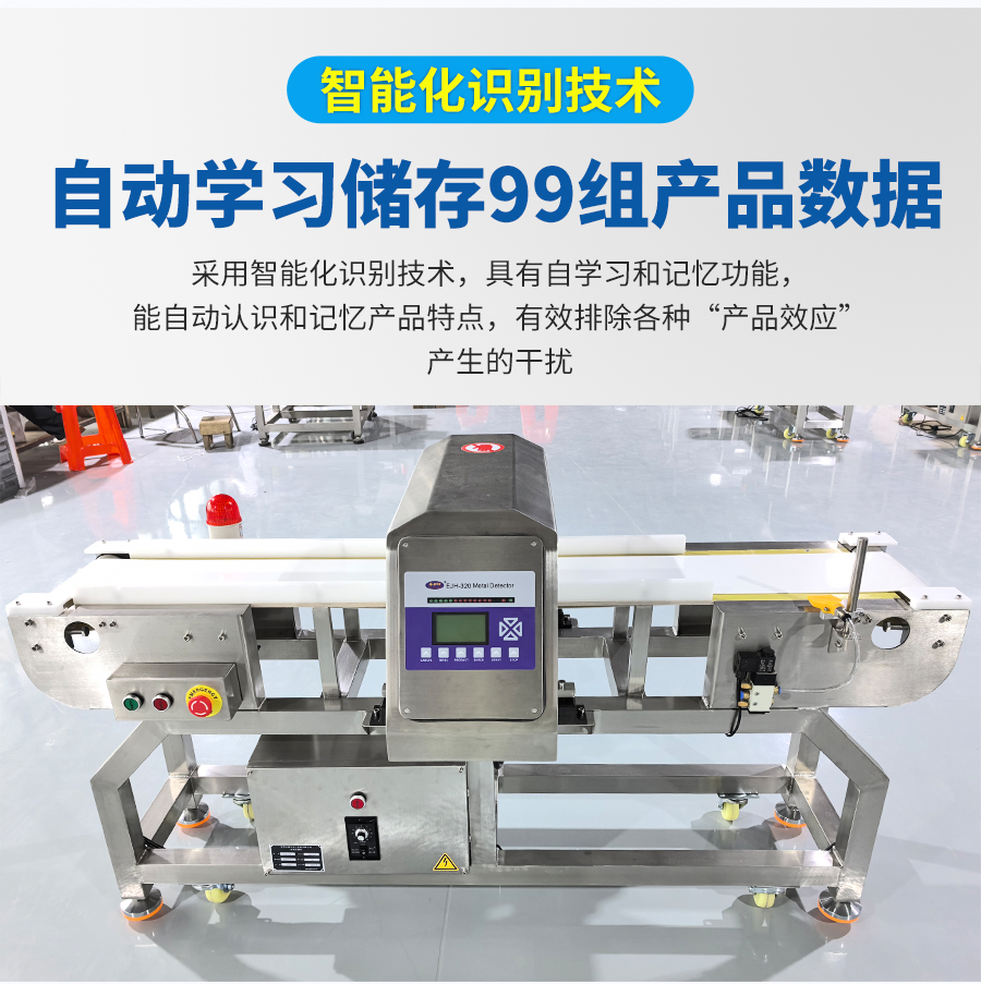 EJH-320吹氣剔除高精度金屬檢測機,采用德國技術先進的數字信號處理技術和智能化算法,精準識別各類金屬雜質,為您的產品質量和安全保駕護航!可檢測鐵、不銹鋼、銅、鋁等所有金屬,靈敏度高達0.5mm,輕松識別細微金屬顆粒,有效克服產品效應,確保檢測結果準確可靠,通過多項權威認證,滿足ISO9001等食品安全管理體系要求,提供通道式、落體式、管道式等多種型號,滿足不同食品生產線的需求,主要用于小食品、化工產品、服裝、制鞋、海洋水產、漁業、干鮮水產、面食、冷凍食品、干鮮蔬果、糖、茶、藥品等行業的金屬異物探測,檢測原料或產品中夾雜或漏落的鐵、鉛等各種金屬雜質等。
