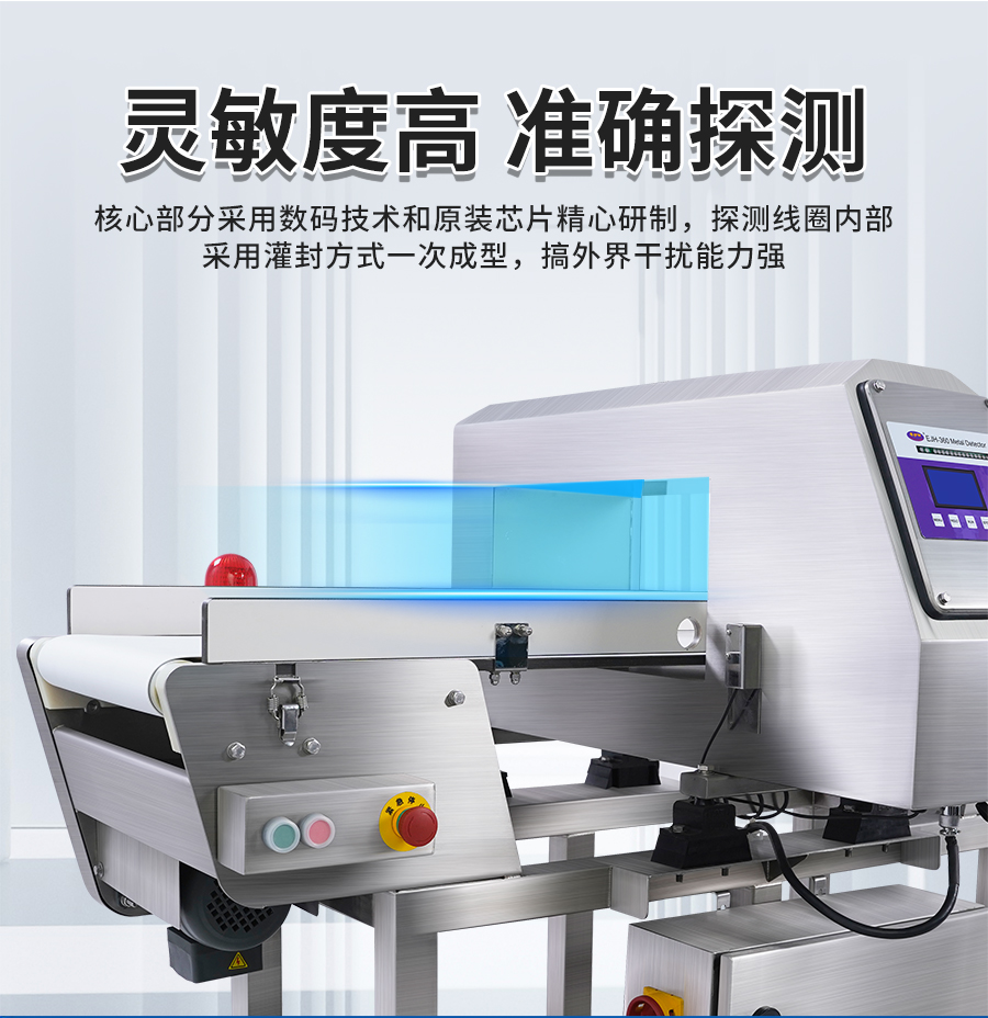 進口高精度金屬檢測機,采用德國技術,檢測精度高,可檢測到直徑0.3mm鐵球,性能卓越。適用于食品,醫藥, 化工等行業中對產品進行金屬雜質檢測,檢測散料及包裝后的產品。