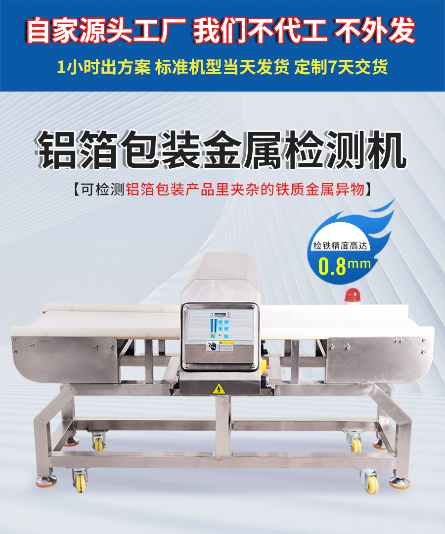 安護(hù)神鋁箔包裝金屬異物檢測(cè)機(jī),專為鋁箔包裝產(chǎn)品量身打造,采用先進(jìn)的多頻技術(shù)和智能算法,精準(zhǔn)識(shí)別鐵金屬異物,有效解決鋁箔包裝金屬檢測(cè)難題!采用特殊頻率和算法,有效克服鋁箔干擾,實(shí)現(xiàn)0.8mm高精度檢測(cè),采用優(yōu)質(zhì)元器件和精密制造工藝,確保設(shè)備長時(shí)間穩(wěn)定運(yùn)行,降低維護(hù)成本。鋁箔機(jī)廣泛應(yīng)用在食品行業(yè)、醫(yī)藥行業(yè)、護(hù)膚品行業(yè),如鋁箔包裝的零食、巧克力、咖啡、奶粉等,檢測(cè)生產(chǎn)過程中混入的金屬異物,保障消費(fèi)者安全。