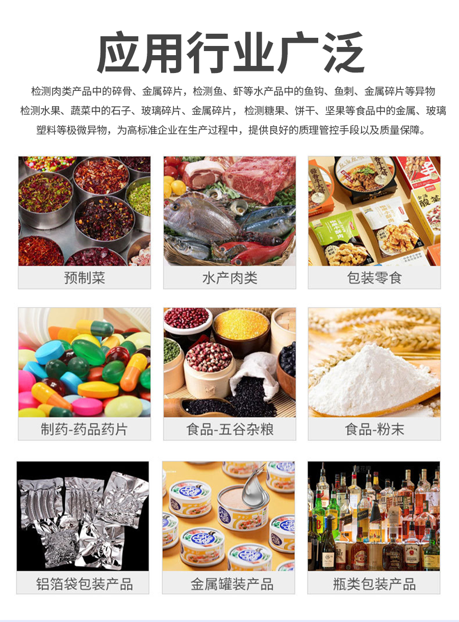 食品x光異物檢測機實現多點遺漏檢測,屏蔽分段檢測,液位高度檢測,高速剔除檢測,遠程遙控控制,綜合實時管理等功能。廣泛的應用于各種食品、藥品、飲料等產品中的異物檢測。