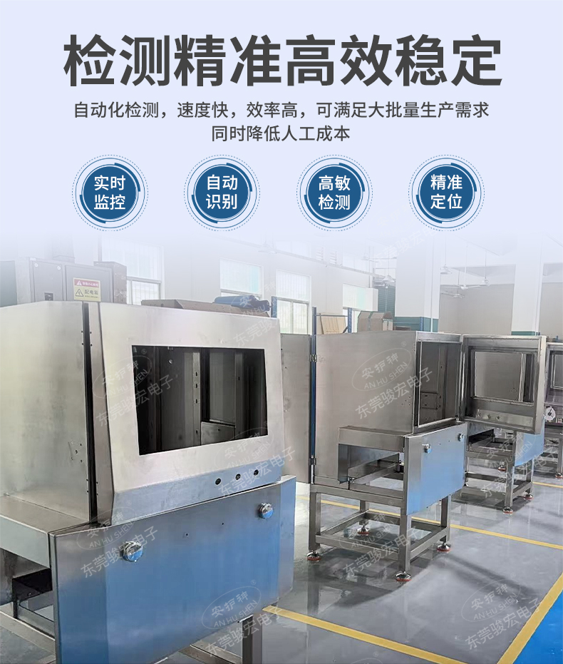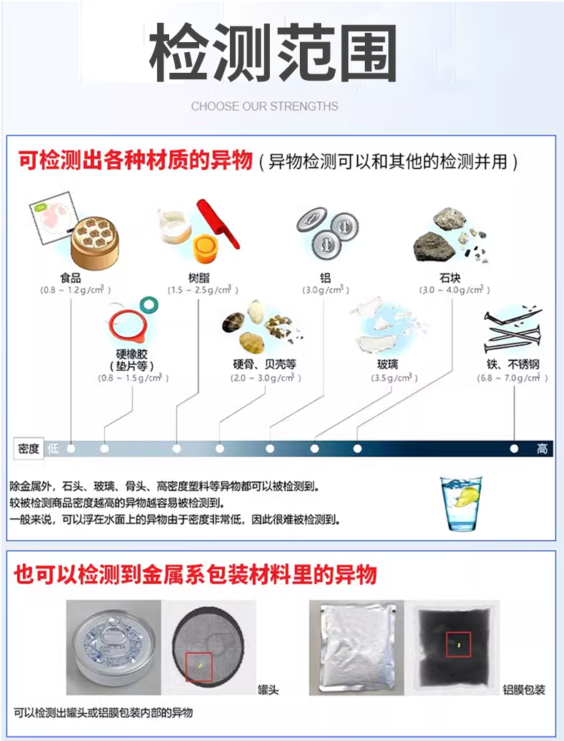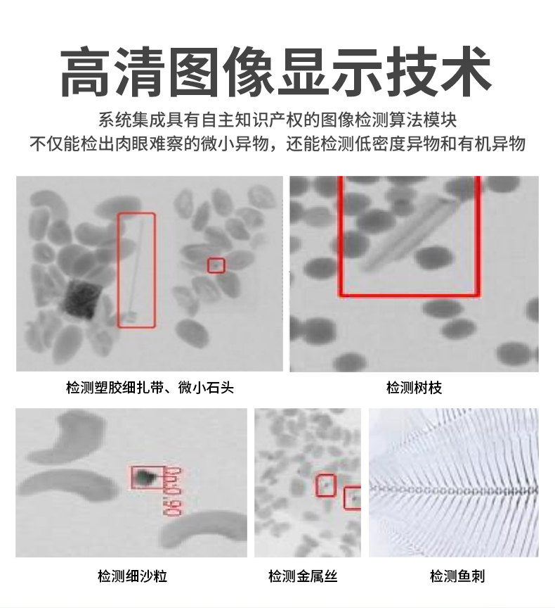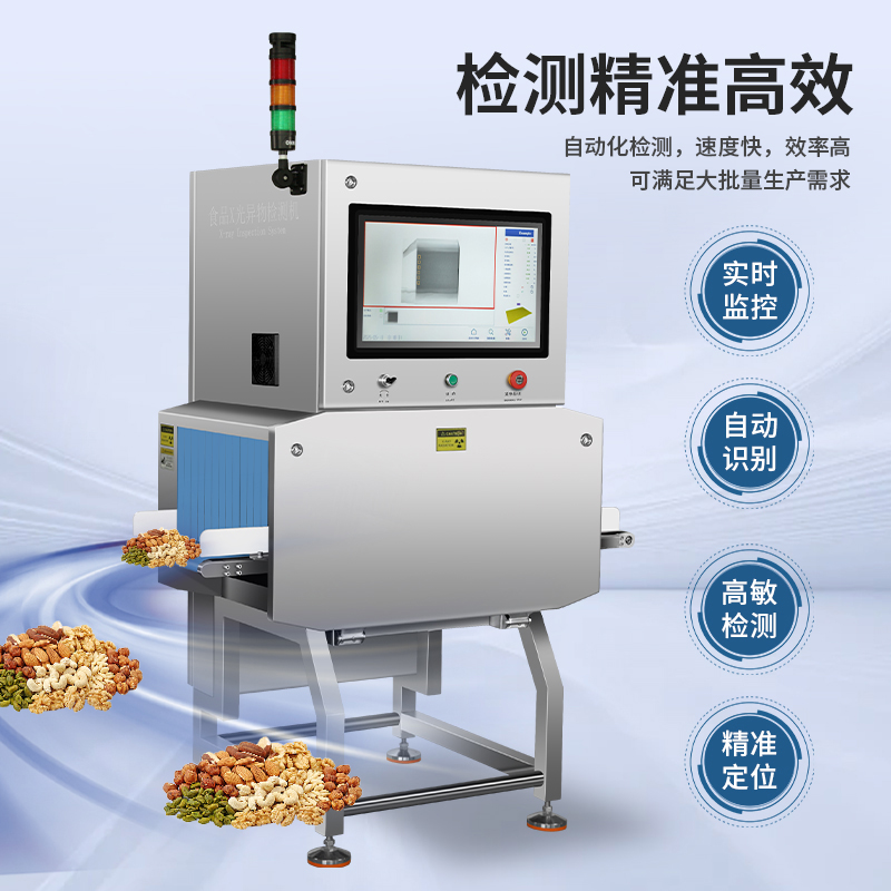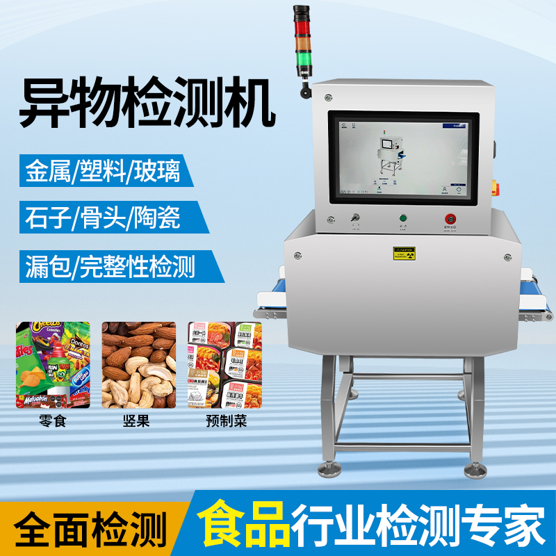 食品異物X光機檢出金屬(鐵、不銹鋼、鋁絲)、非金屬(玻璃、陶瓷、骨頭、硬塑料),尤其解決金檢機無法識別的薄鋁箔異物難題,復雜包裝穿透檢測,適用罐裝/真空/鋁箔包裝,雙射線技術精準識別醬料瓶內玻璃渣、罐頭魚刺、巧克力中的陶瓷碎片。 2025新型X光異物檢測機,食品X光機廠家直供,雙視角0.3mm精度,替代金檢機,鋁箔包裝穿透,支持定制,當天出方案 。
