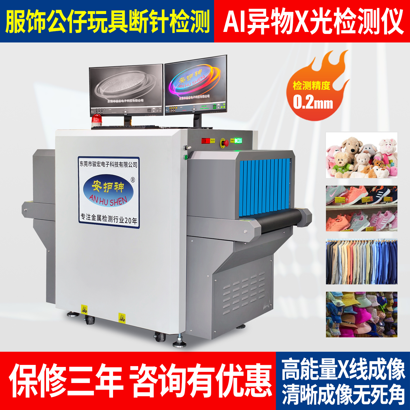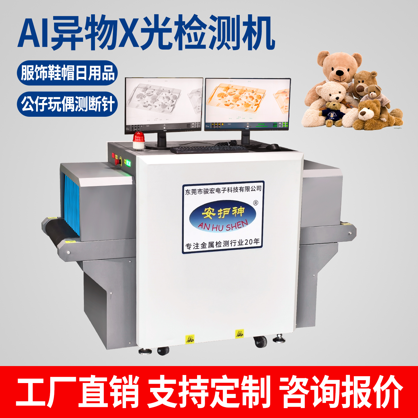 安護神高清透視AI異物X光射線檢測機高精度服裝玩偶鞋帽金屬探測器